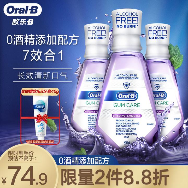 欧乐B漱口水除牙菌斑牙龈专护漱口水500ml3瓶装 欧美设京东¥ 72.90去购买原来是吉列旗下,后来被宝洁公司收购了,hh品牌方面基本没什么问题,主打的是7效护牙龈,成分看是不含酒精,比较温和,口感还可以,然后含有西吡氯铵这种抑菌剂,可以有效抑菌,唯一缺点大概就是味道有点难闻,怎么说呢,像是风油精的味道?含久了会有点辣,泡泡很多,就跟嘴里吃了个泡腾片似的QAQ,这个感觉我不是很喜欢