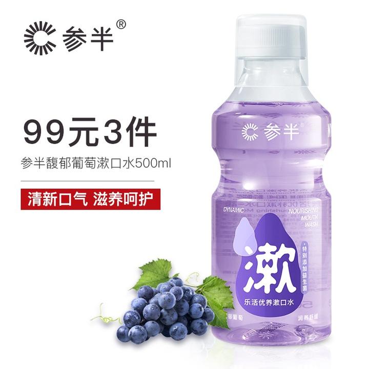 参半漱口水 赵露思代言益生菌清新口气深层洁净清洁温京东¥ 39.90去购买有段时间参半漱口水人气热度很高,可以说是个网红爆款了,我也不能免俗的跟风来了一瓶hhh。这是个土生土长的国货,包装类似养乐多,比较可爱,中间的凹陷设计也很好握持,漱口水不含酒精,不含氟,比较适合日常使用,主打的益生菌成分是鼠李糖乳酸杆菌,令我百思不得奇解的是添加在无法吞服的漱口水中要怎么用hh?使用感受上倒是蛮不错的,入口非常温和,不刺激,味道有点甜,有薄荷,西柚,葡萄三种口味,主打的功能也是去口臭,我感觉清新口气能力也是不错的!可以说是拥有比较长的留香时间,感觉得有个1小时了,也是我比较钟爱的一款!