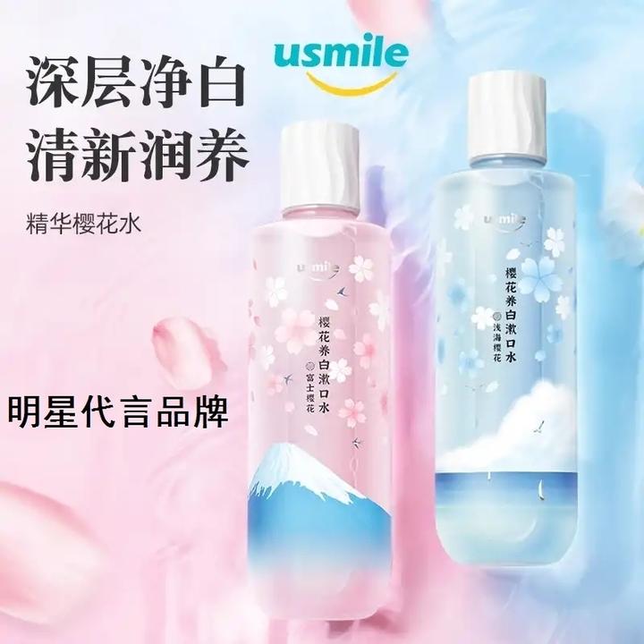 usmile樱花漱口水洁白净白便携含簌液口腔清洁杀菌男女淘宝¥ 55.46去购买Hhh作为一个颜控,我很喜欢他家的包装,可以说颜值是usmile的一大特点了,我挺喜欢那款清甜橙花味道的,倒出来大概半个瓶盖多一点,是比较适合一口的量,然后入口后有一点点苦味,会慢慢变得甘甜,怎么说呢,有点像茶味,不刺激不辣嘴,有凉感,喜欢喝茶的人我觉得一定会喜欢这款!也是不含氟化物和酒精的非药物漱口水,可以长期使用,比较安全!