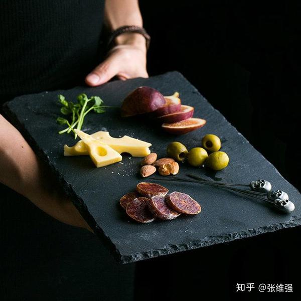 尤其做出甜点之后,用低调大气的大理石板盛放,黑色更加凸显出食物色彩的丰富。不止可以做餐盘,还能做拍照的背景板,拍起来什么角度都很好看。