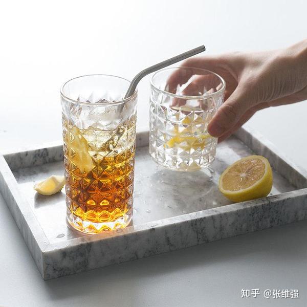 店里还有同款加厚玻璃杯,虽然看着简单,其实很有气质呢,类似穿搭中的基本款。日式捶纹凸显了玻璃杯的立体感,更能显示出饮品的颜色,最适合装色彩缤纷的水果茶。再搭上图片中的大理石托盘,简约高逼格了解一下?
