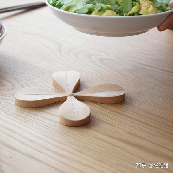 这款隔热垫的灵感是来自于古代门窗格,再结合有“幸运”之意的四叶草,放在餐桌上带来自然又传统的气息。