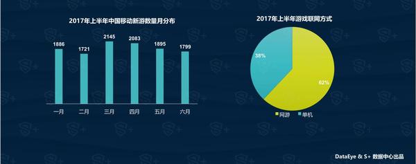 2017年上半年共上线新游超过11000款,其中网游占62%;网游付费手段的多样化、各级渠道分成比例的灵活性、受众群体的广泛性,营收活动以及游戏推广的丰富性都奠定了其成为市场主流产品的地位。