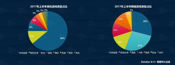 而网络游戏,在2017年上半年,《王者荣耀》成为网游市场上的“最强王者”,其他电竞游戏的表现只能说是强差人意,各游戏商仍以MMO为主力的重度产品进行厮杀,圈粉圈用户。而SLG将有数款重量级产品在下半年陆续推出,能否取得突破,值得期待。
