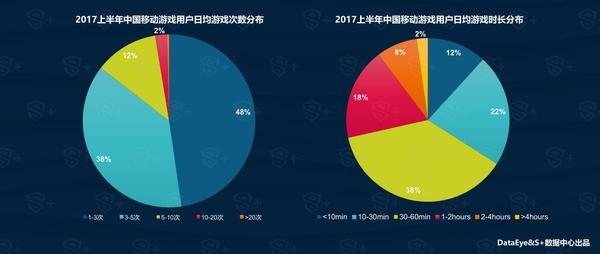 2017年上半年,超过50%的中国移动游戏玩家日均游戏次数大于3次;日均游戏时长约为1小时;游戏类型的多元化以及精细化,特别是优秀的RPG和MOBA等重度游戏不断涌现,让玩家每日游戏次数以及在线时长出现增长。